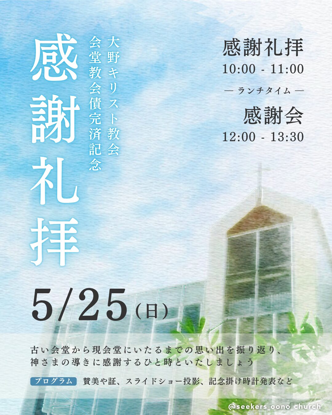 ※当日は、Seekers賛美集会はお休みです。